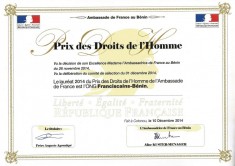 Franciscains-Benin a reçue de l'Ambassade de France au Bénin, le Prix des Droits de l'Homme.